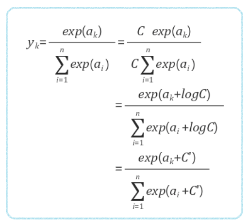 이때 이렇게 c라는 상수를 써도 되는 이유는 소프트맥스 함수의 출력은 0에서 1.0 사이의 실수이기 때문이다.