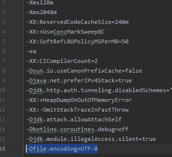맨 아랫줄에 -Dfile.encoding=UTF-8 를 추가해준 후 저장한다. 이후 IntelliJ를 다시 실행한다.