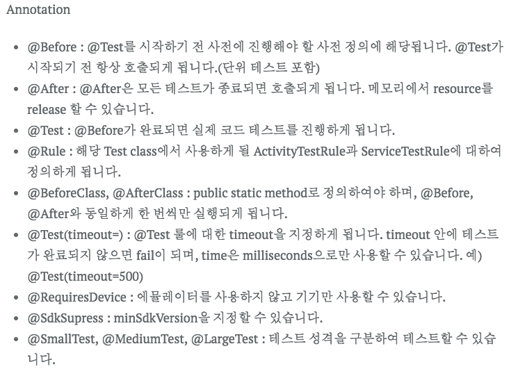 Espresso를 이용한 테스트 아래 주석을 통해 좀더 자세히 적어두었다.