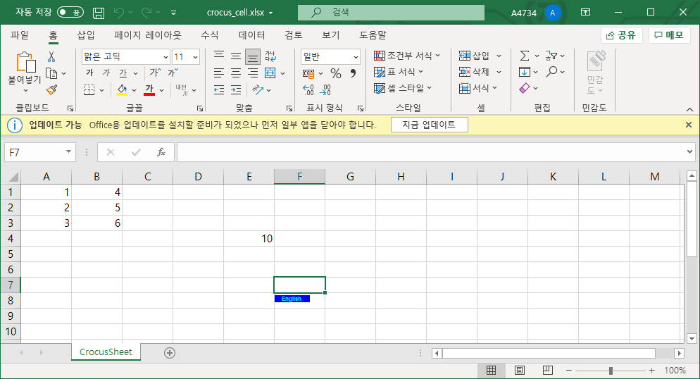 위와 같이 하면 파라미터 값이 row, column, value 순서로 값이 들어가기에 E4에 10을 넣으라는 말과 동치가 된다.