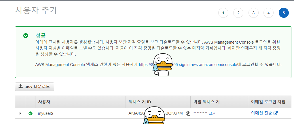 두번째 사용자를 다음과 같이 생성해주고 다음 버튼을 누른다.