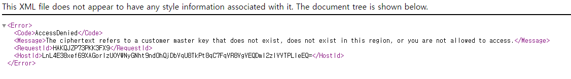 해당 계정으로 s3에 접근하여 다운로드를 누르면 다음과 같이 AccessDenied를 볼 수 있다.