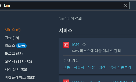우선 IAM을 들어가서 엑세스 관리 → 사용자 탭에 들어가서